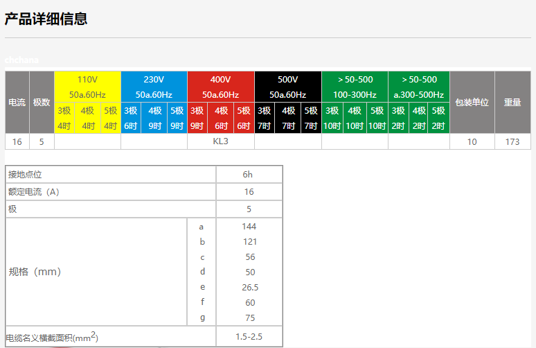产品规格: 16A / 5P / 400V / 6h /50a.60Hz