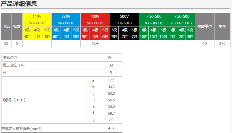 产品规格: 32A / 5P / 400V / 6h /50a.60Hz