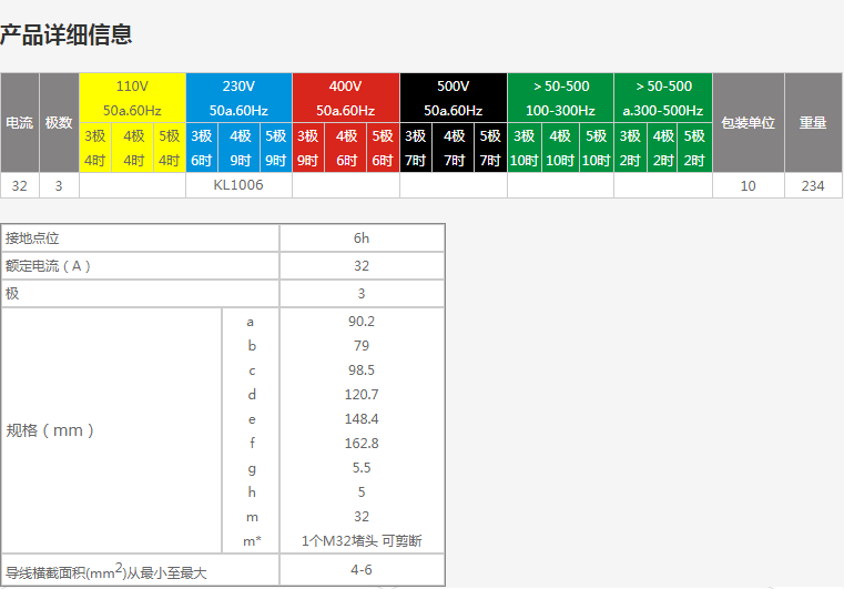 产品规格: 32A / 3P / 6H / 230V / IP67