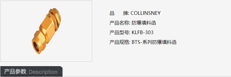 品 牌: COLLINSNEY 产品名称: 防爆填料函 产品型号: KLFB-303 产品规格: BTS-系列防爆填料函