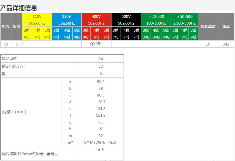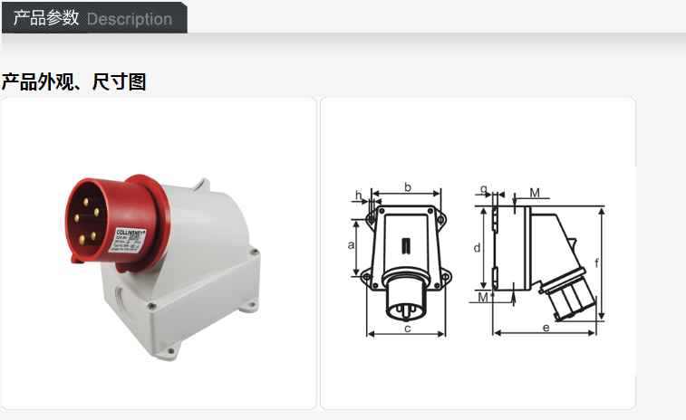 产品规格: 32A / 5P / 6H / 400V / IP67