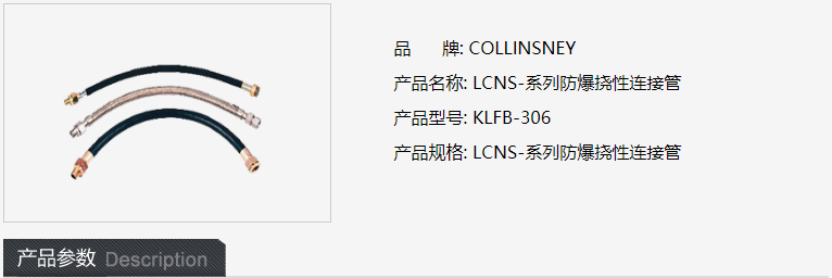品 牌: COLLINSNEY 产品名称: LCNS-系列防爆挠性连接管 产品型号: KLFB-306 产品规格: LCNS-系列防爆挠性连接管
