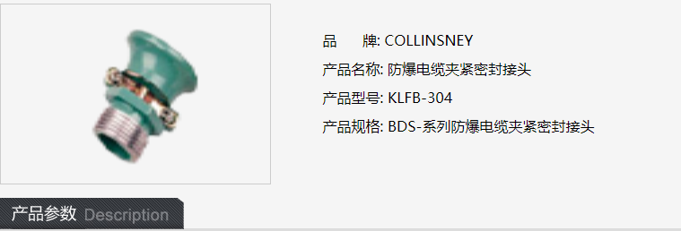 品 牌: COLLINSNEY 产品名称: 防爆电缆夹紧密封接头 产品型号: KLFB-304 产品规格: BDS-系列防爆电缆夹紧密封接头