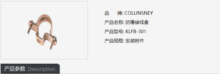 品 牌: COLLINSNEY 产品名称: 防爆接线盒 产品型号: KLFB-301 产品规格: 安装附件